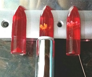 Không như son sáp, Bạn có thể dễ dàng rút son theo chiều thẳng đứng; để tách son thạch khỏi khuôn bạn phải mở khuôn (như hình) và rút son theo chiều ngang