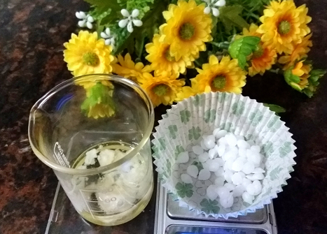 - Cốc 1: Cân và cho các nguyên liệu son lì gồm: sáp ong (hoặc bánh ong), sáp candelilla, sáp carnauba, sáp resin, bơ xoài, lanolin vào 1 cốc thủy tinh. Cho cốc 1 vào lò vi sóng hoặc đặt lên bếp hồng ngoại, nồi cách thủy để sáp tan chảy, khuấy đều hỗn hợp.