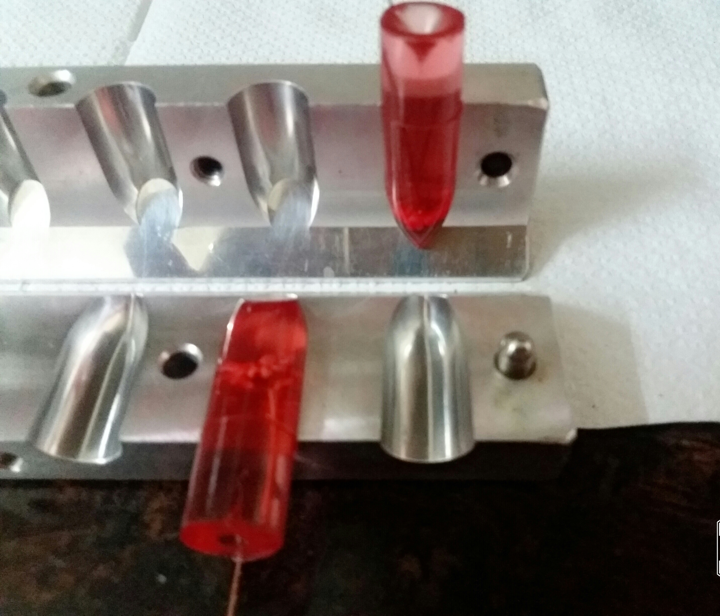 - Son thạch đông lại trong khoảng 2-3 phút, mở khuôn, nhẹ nhàng gỡ son theo chiều từ vỏ son đến đầu son Bạn nhé!