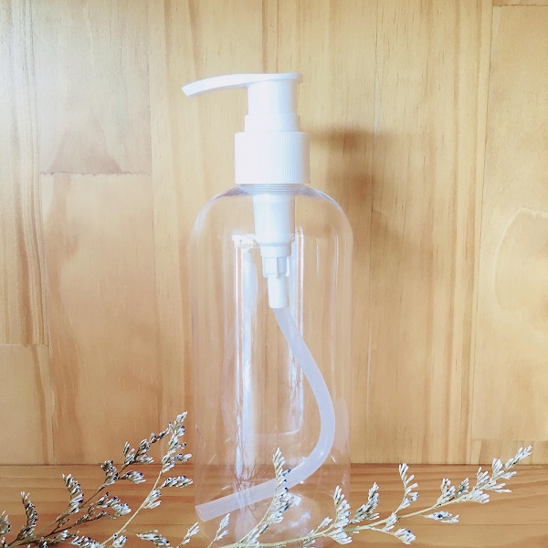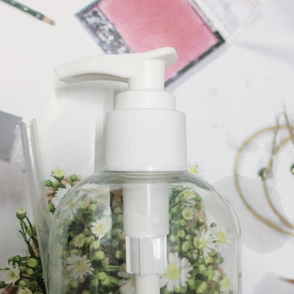 - Chai đựng mỹ phẩm bằng nhựa trong, nắp có vòi nhấn nhỏ giọt.