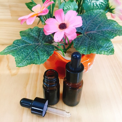 - Chai đựng mỹ phẩm bằng thủy tinh tối màu, nắp có ống nhỏ giọt.