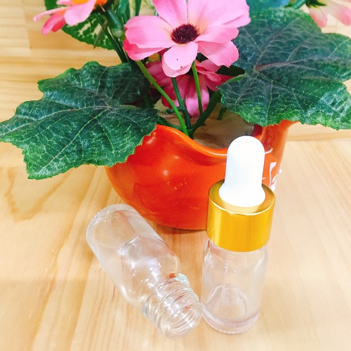 - Chai đựng mỹ phẩm bằng thủy tinh trong , nắp có ống nhỏ giọt.