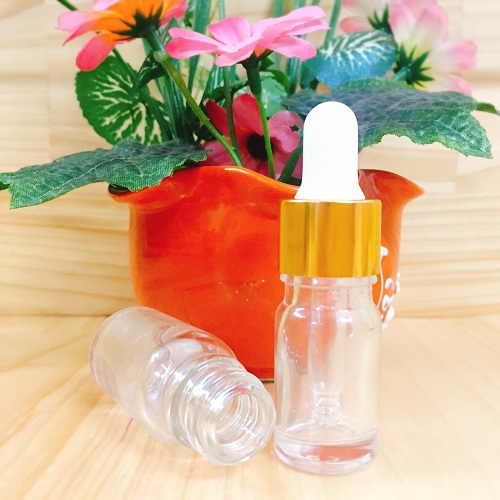 - Chai đựng mỹ phẩm bằng thủy tinh trong , nắp có ống nhỏ giọt.