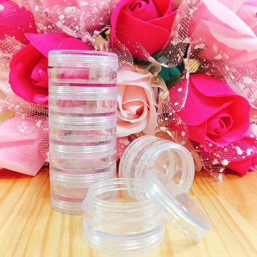 - Hũ đựng son trong suốt chứa được 3g thành phẩm.