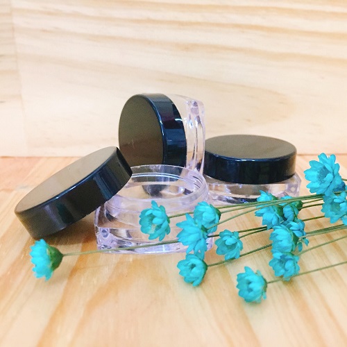 - Hũ đựng son trong suốt chứa được 5g thành phẩm.